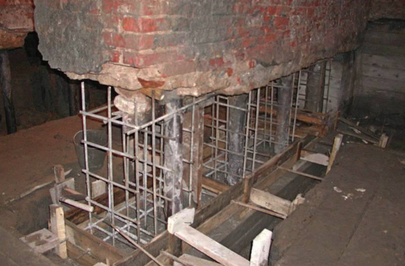 Сваи усиления столбов, выполненные из погребов Константиновского дворца